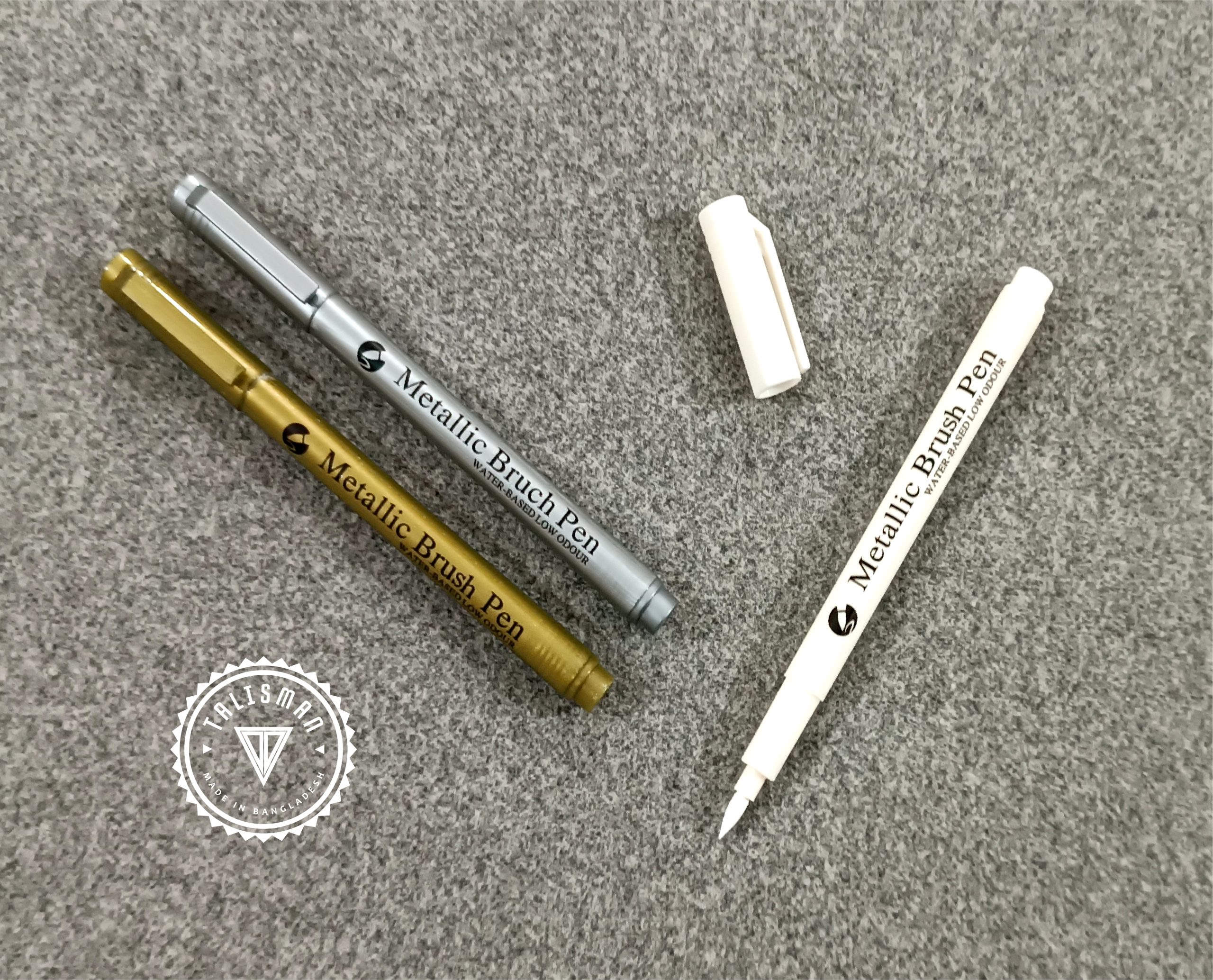 AMAK A266 White, Silver & Golden Metallic Brush Pen – 03 Pcs Set